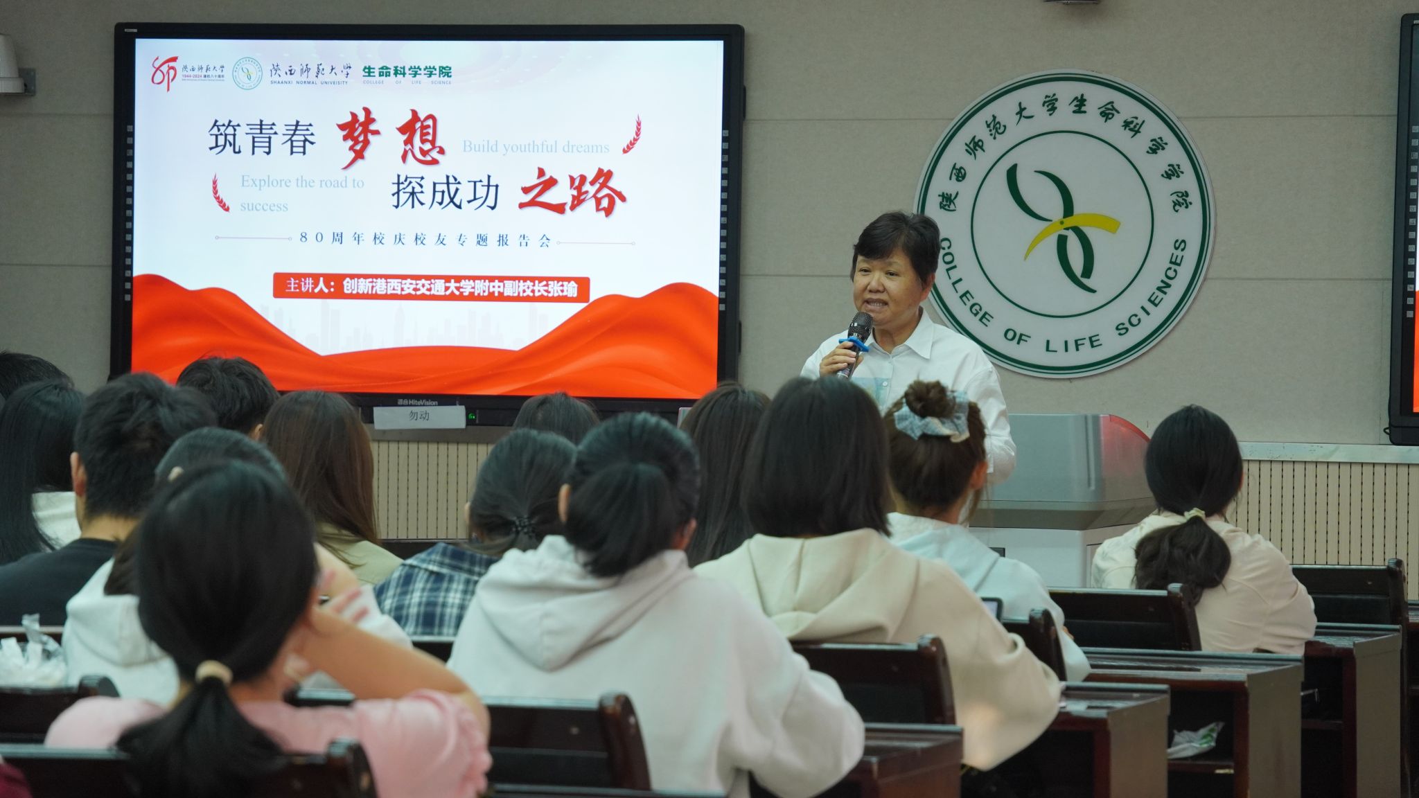张董事长以“筑青春梦想,探成功之路”为主题,为同学们带来了一场内容丰富的报告会。她以自身成长经历为蓝本,生动展现了在专业与职业选择上的独到见解,表达了对生物学领域无比醇厚的热爱之情,并深情寄语同学们要珍视并热爱自己的专业。张董事长还以平和亲切的态度,与大家分享了自己的职业发展轨迹,细致入微地阐述了教师如何精彩地开启第一课、如何明确个人发展蓝图、如何有效应对职业瓶颈等关键问题。她殷切期望同学们能够扎实掌握专业知识,敏锐洞察生命奥秘,不断提升自我学习能力,激发创新潜能,以卓越的教学能力立足三尺讲台。