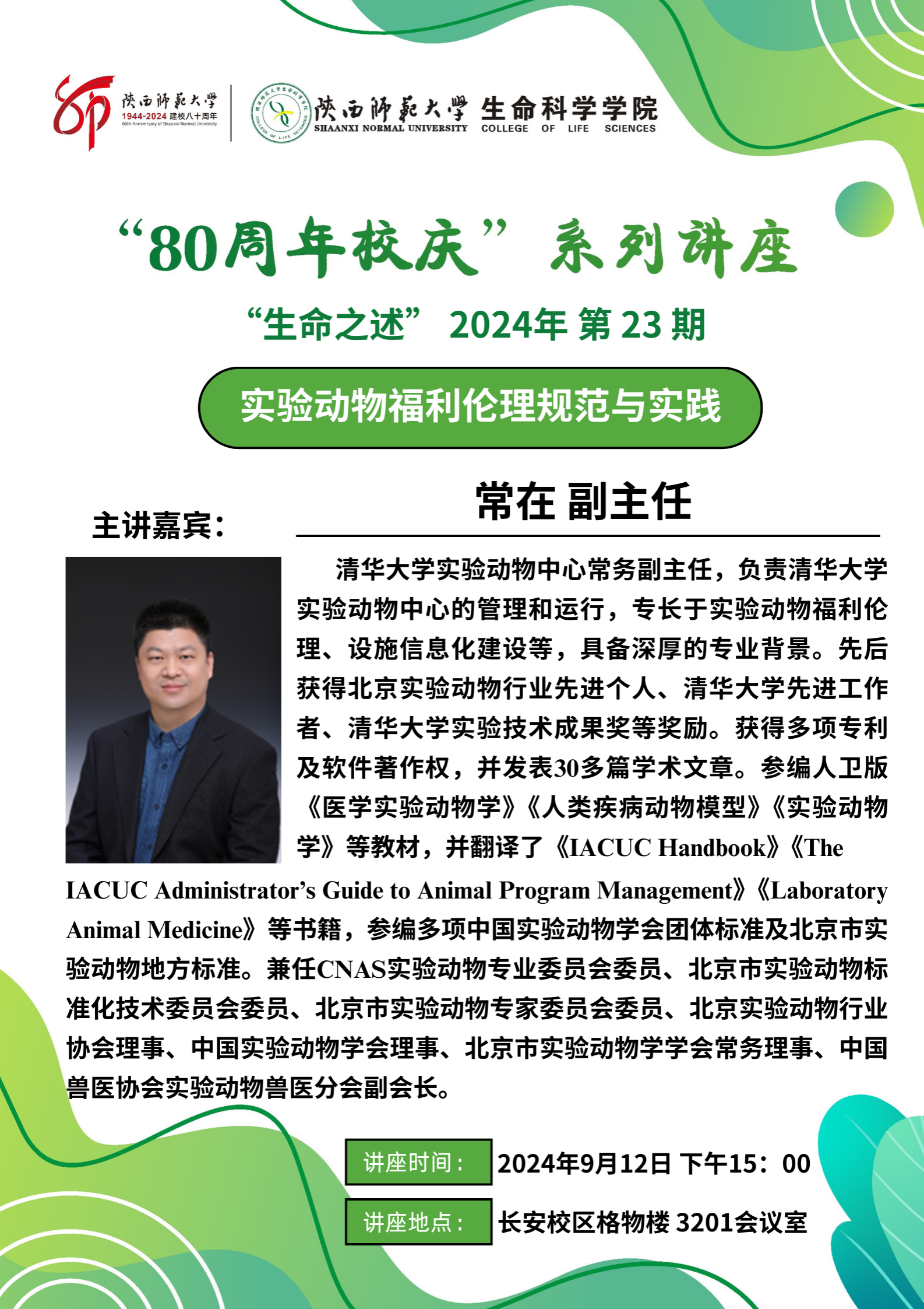 “80周年校庆”系列讲座 第23期 -- “实验动物福利伦理规范与实践”