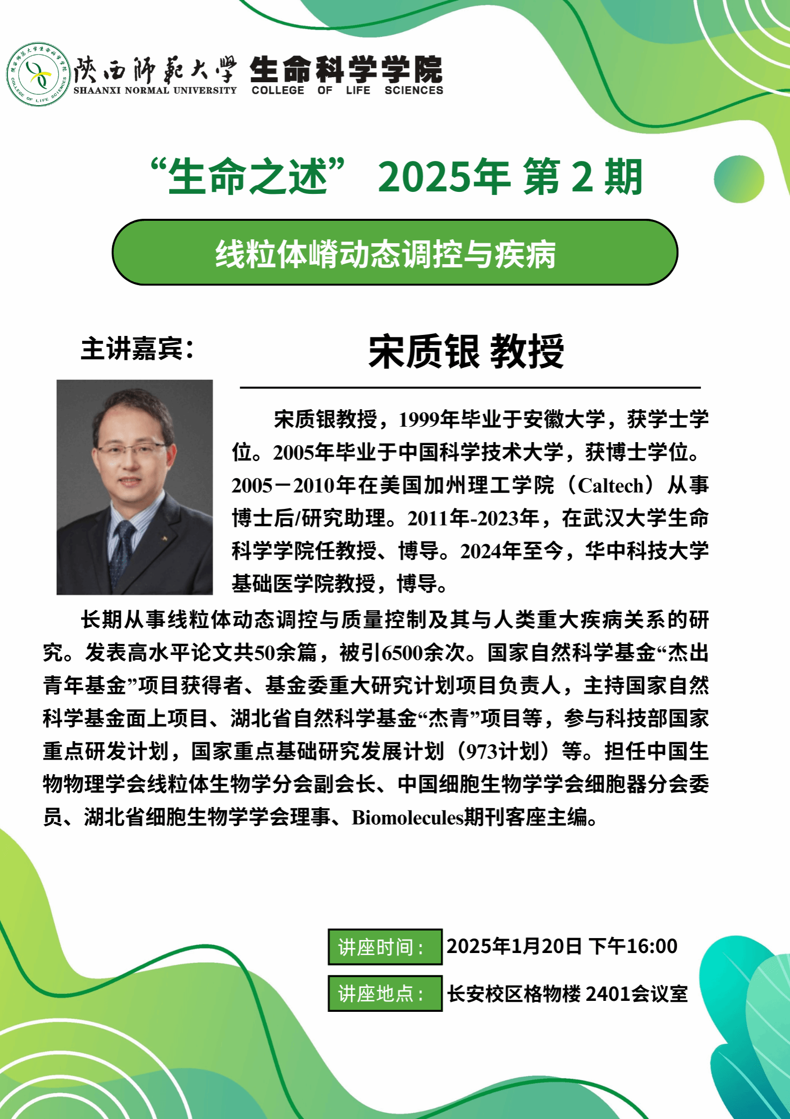 “生命之述”系列讲座 2025年 第2期 - 线粒体嵴动态调控与疾病
